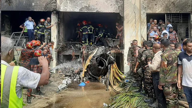ফায়ার সার্ভিস জানায়, আজ বেলা ১টা ১৮ মিনিটে মাইলস্টোন স্কুল অ্যান্ড কলেজের ভবনে বিমানটি বিধ্বস্ত হয়।